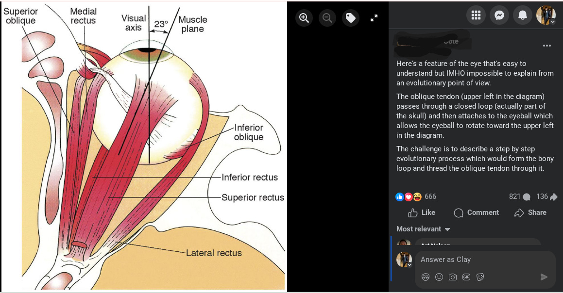 Today I watched a familiar fight break out online: creationists posting a complex anatomical feature of the eye as “impossible” to explain by evolution, and evolution defenders responding with scornful certainty—“This is well documented,” “Read a book,” “You’re ignorant.”